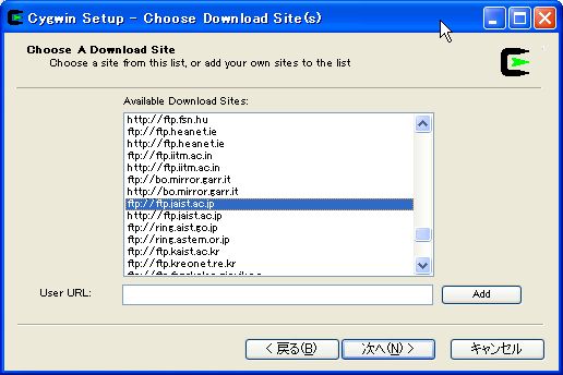 Cygwinは以下のサイトからダウンロードできます。ここからsetup.exeをダウンロードします。