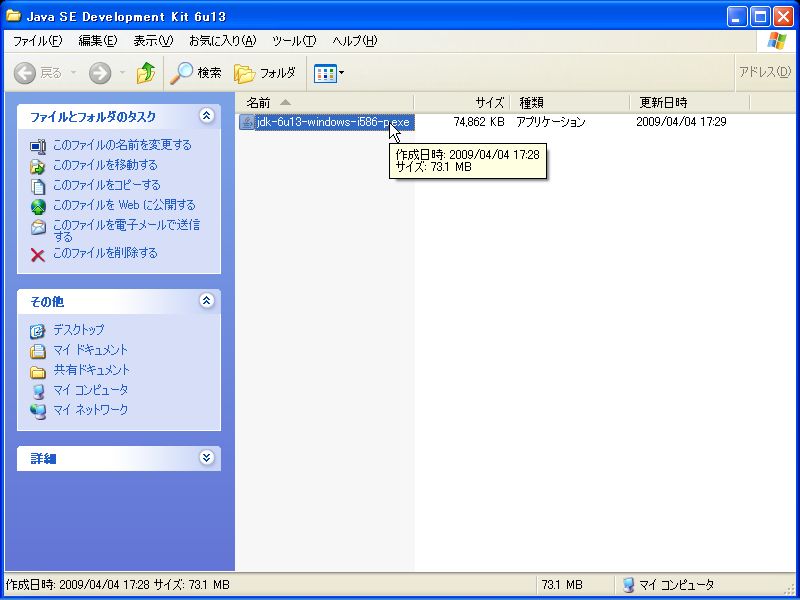 javac 1.6.0_13と表示されれば、インストール完了です。