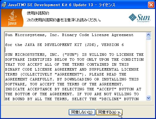 Sun MicrosystemsホームページにJava SE Development Kit (JDK)をダウンロードします。