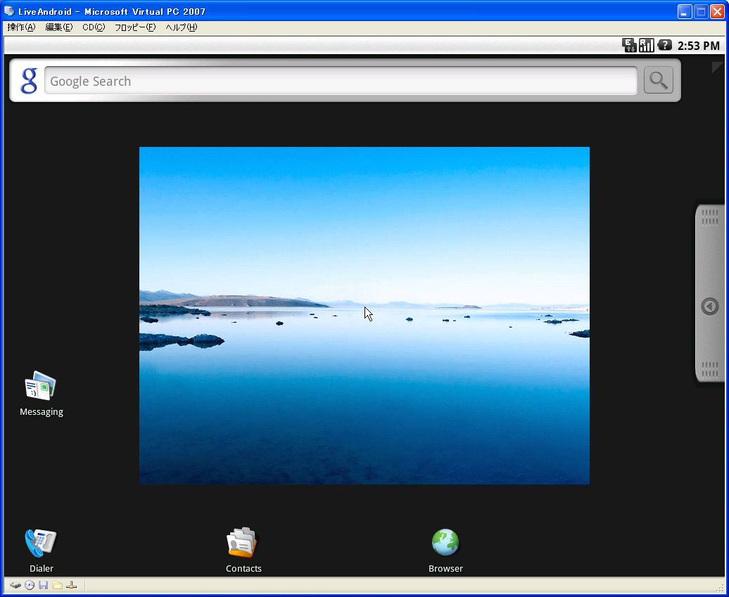 さっそく、Microsoft Virtual PCでLiveAndroidを動かして見ました。