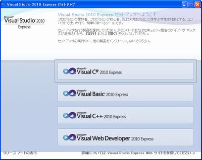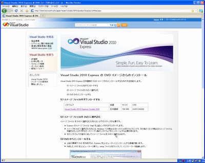 今回は、マイクロソフトから無償提供されている、Visual Studio 2010 Expressのインストールを