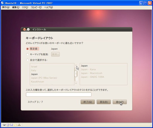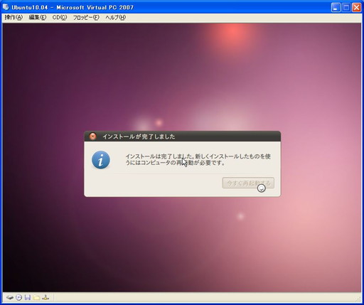 ちなみにUbuntu 10.10ではMicrosoft Virtual PCにインストールできませんでした。残念・・・
