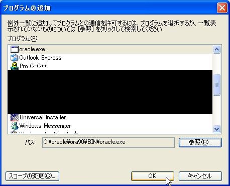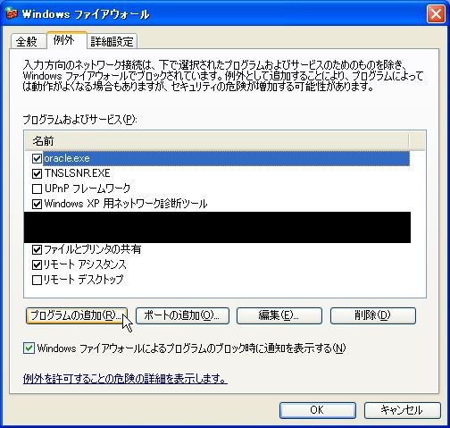 4.上記の要領で、「C:¥oracle¥ora90¥BIN¥TNSLSNR.EXE」も追加します。