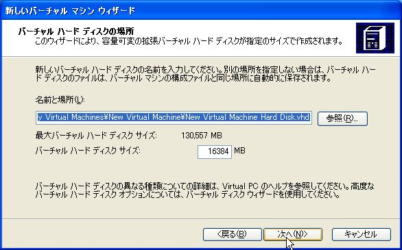 Microsoft Virtual PC 2007での仮想マシン作成をやってみます。