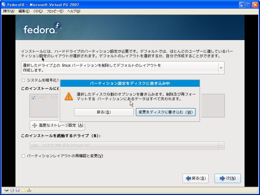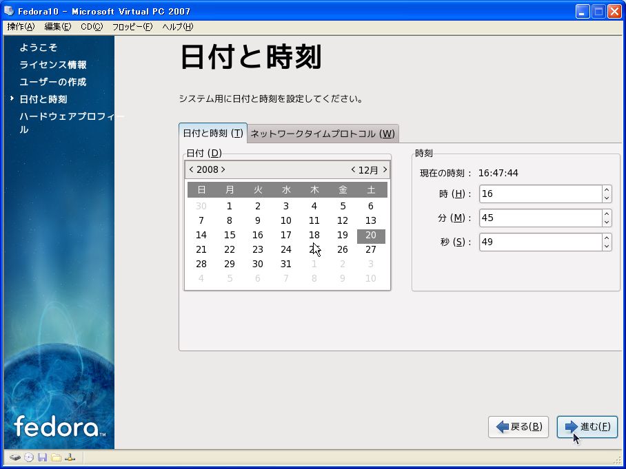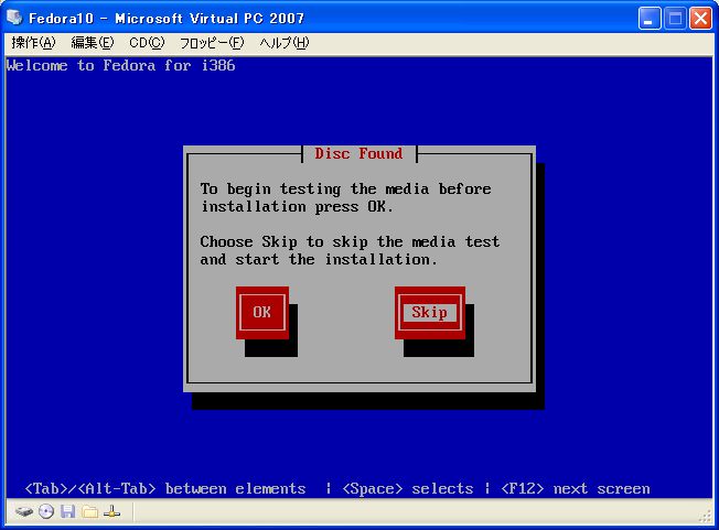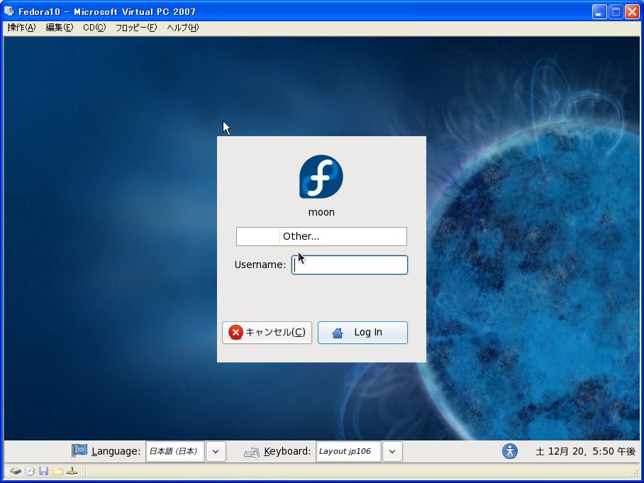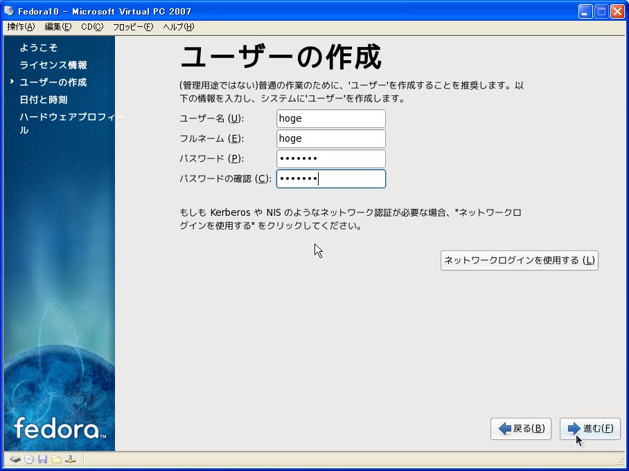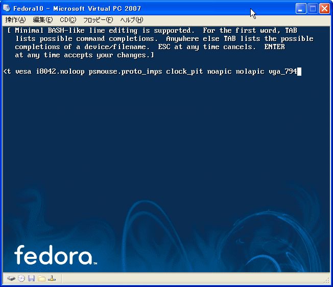 ※インストール後の感想:やはりMicrosoft Virtual PC上でFedora10を動かすととても遅いです、まあお手軽勉強目的という事で我慢するしかないですね。