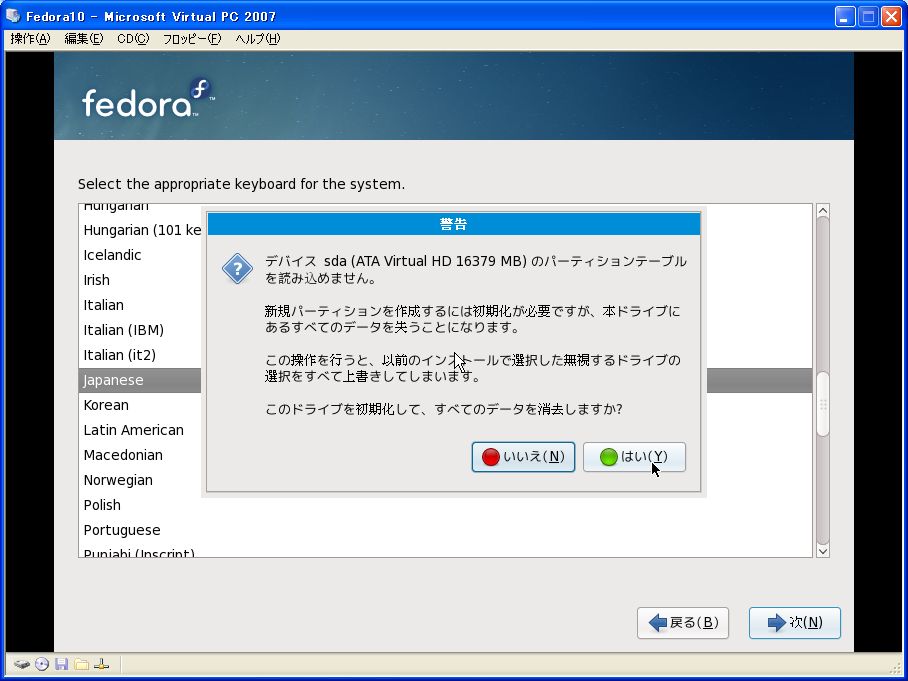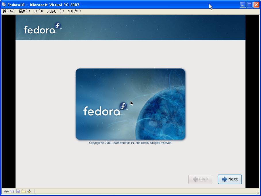 という事で今回は、Microsoft Virtual PCにFedora10をインストールをしたいと思います。
