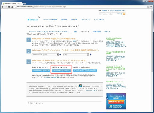 1.以下より「Windows Virtual PC」をダウンロードする。(注)「Windows Virtual PC」はWindows7のみ対応しています。2.ダウンロードしたファイルをダブルクリックし、指示に従いインストールします。※これでインストールが完了しました。続けてバーチャルマシーンを作成します。3.スタートメニューから「Windows Virtual PC」を選択する。PR -